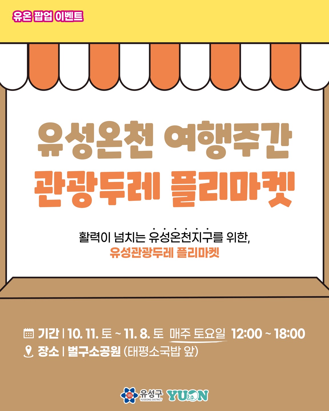 유성온천 여행주간 관광두레 플리마켓이 열립니다.