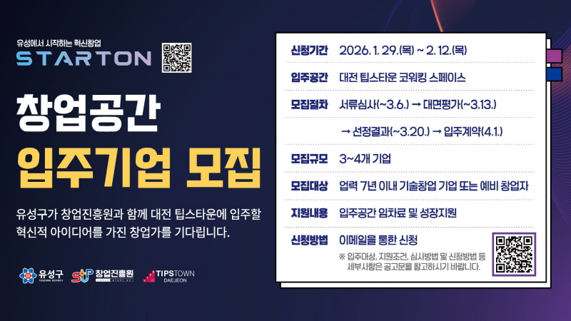 유성구와 대전 팁스타운에서 운영중인 창업 지원프로그램에도 참여할 기회를 기지게 됩니다.