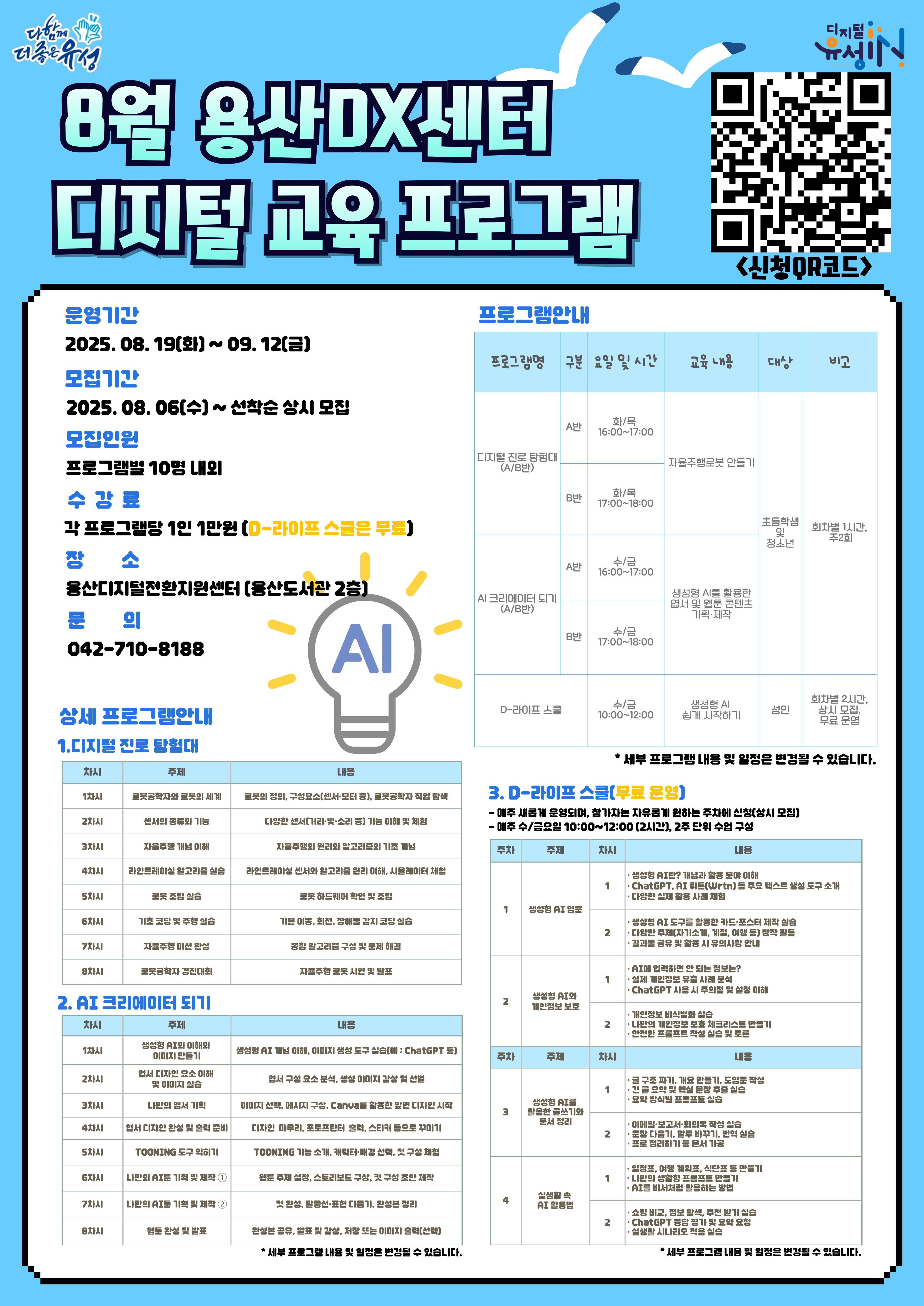 - 수강료: 각 프로그램당 1인 1만원(D-라이프 스쿨은 무료)