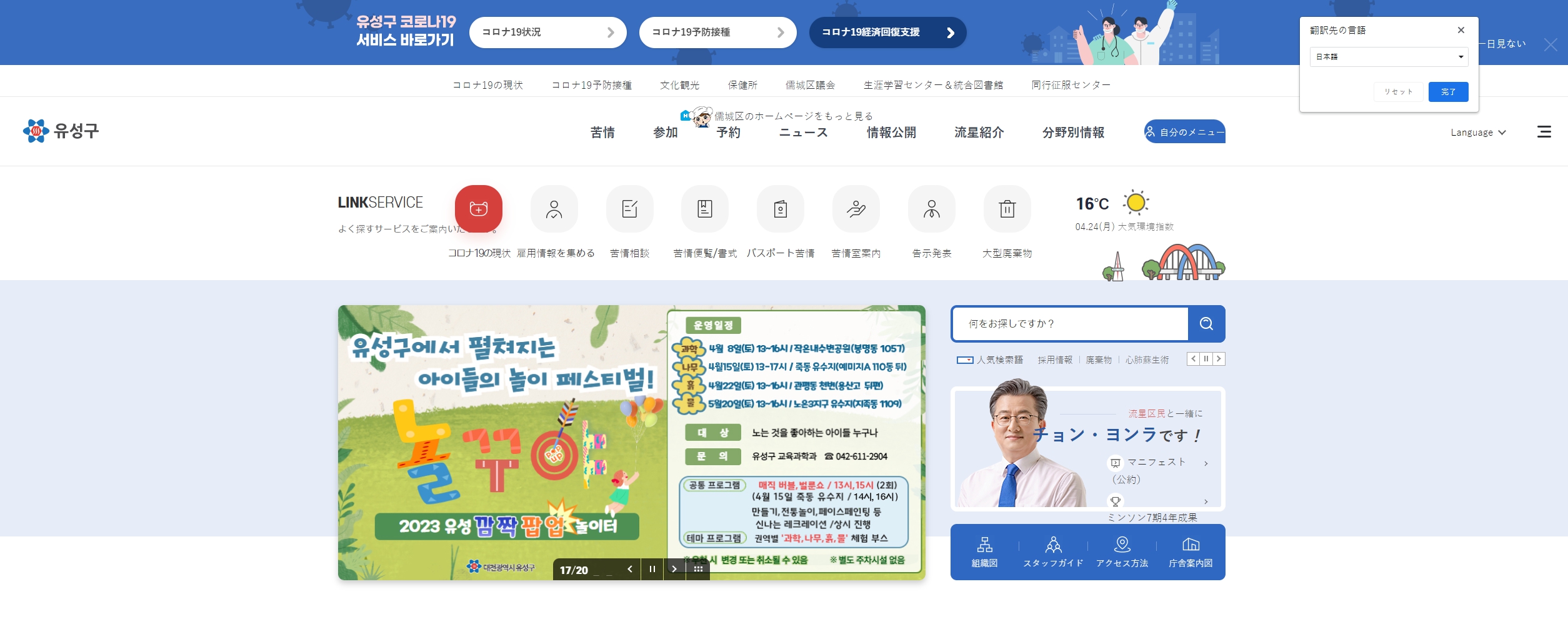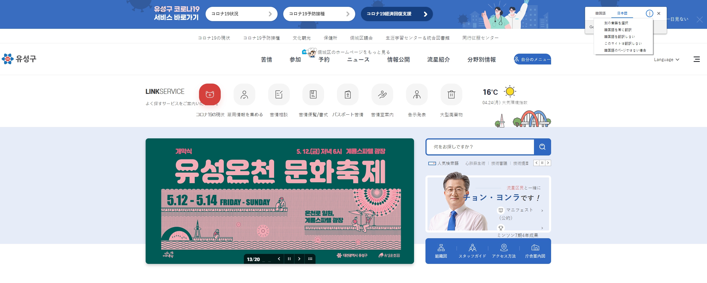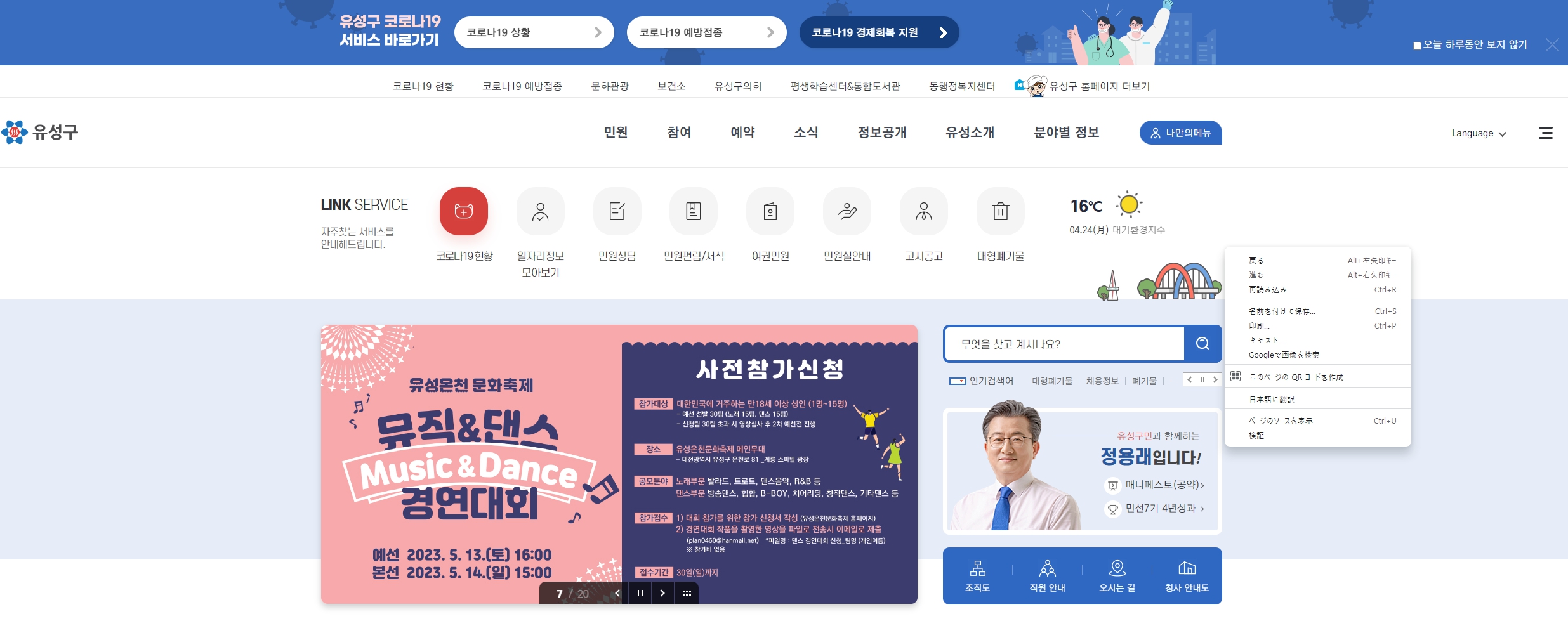 1. ホームページ画面で右クリックし、「日本語に翻訳」メニューを選択します。