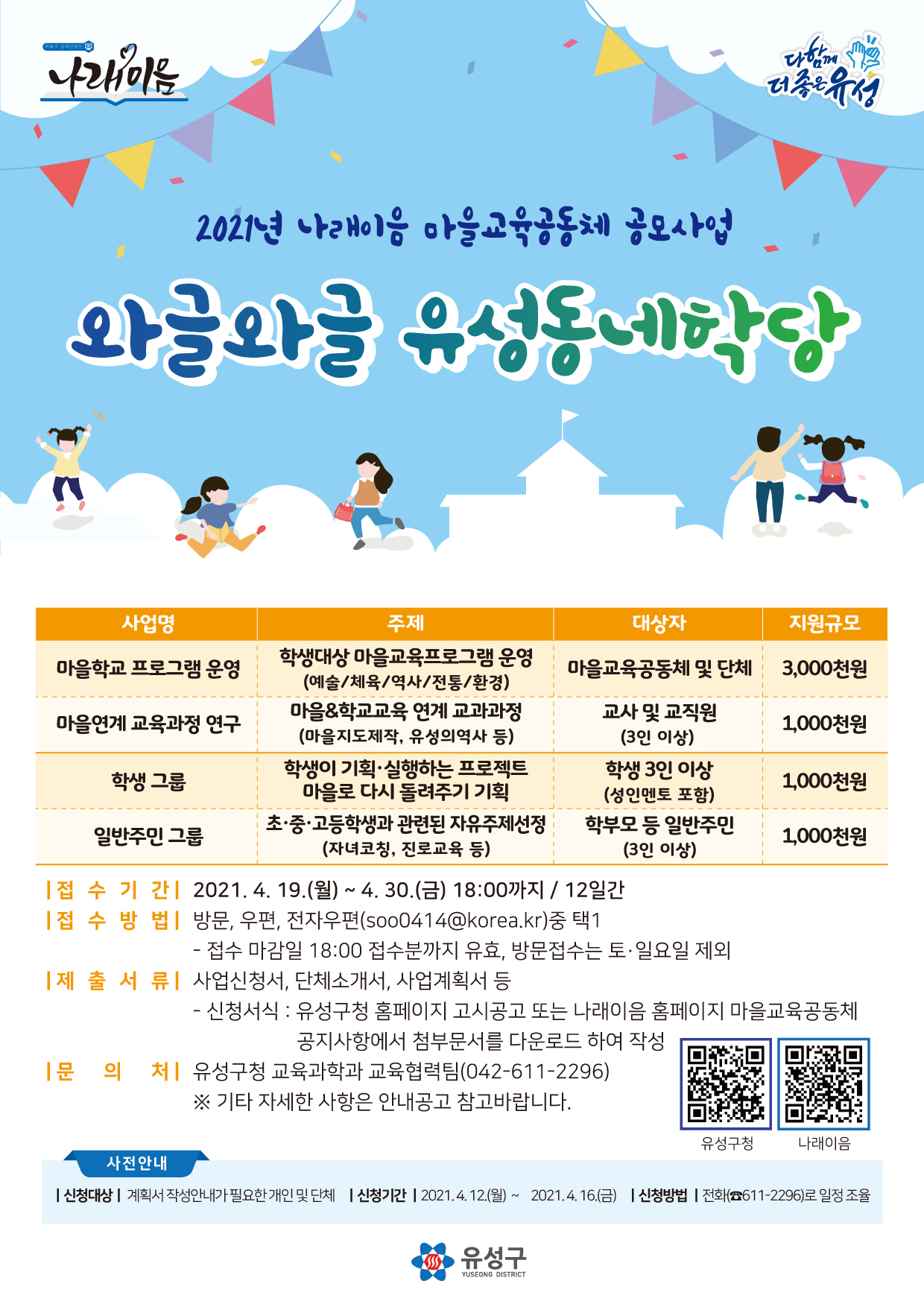 * 자세한 사항은 첨부파일을 참고하세요~ (문의처 : 유성구청 교육과학과 042-611-2296